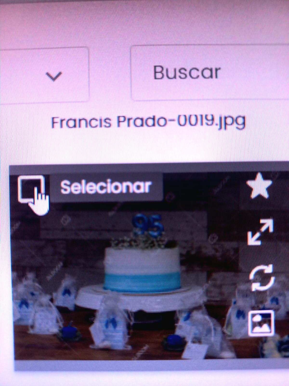 Selecione a foto clicando no botão selecionar no canto esquerdo superior da imagem.